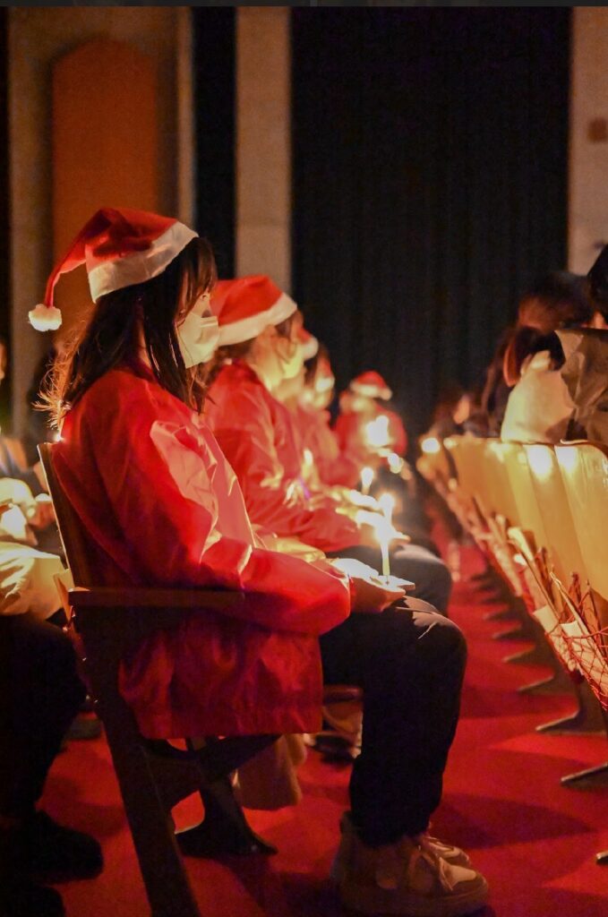 1人1つろうそくを持ち,聖歌隊の方たちの歌を聴いた後、蝋燭に火を灯し、そのままの方のお話を聞きました!🕯️🎄